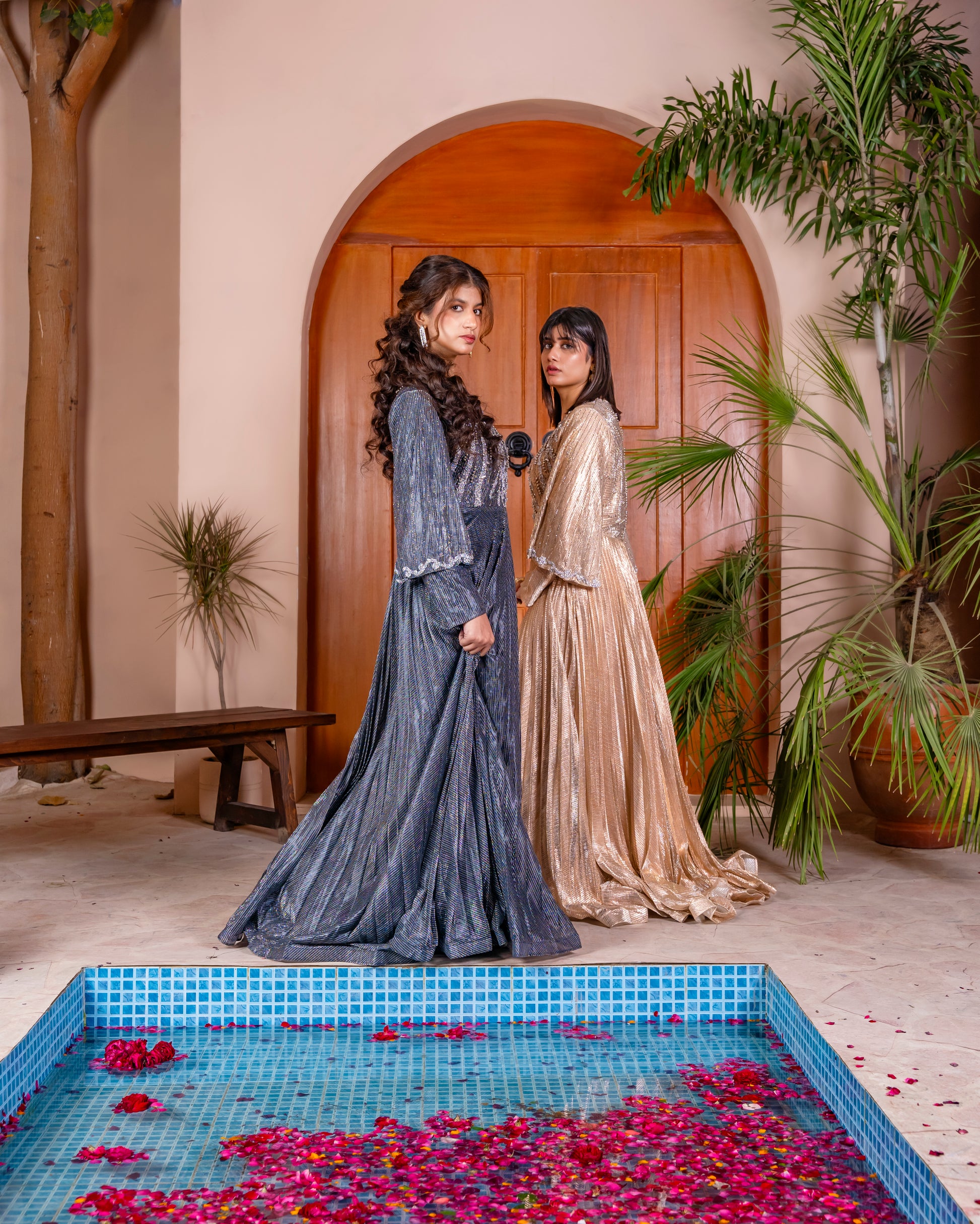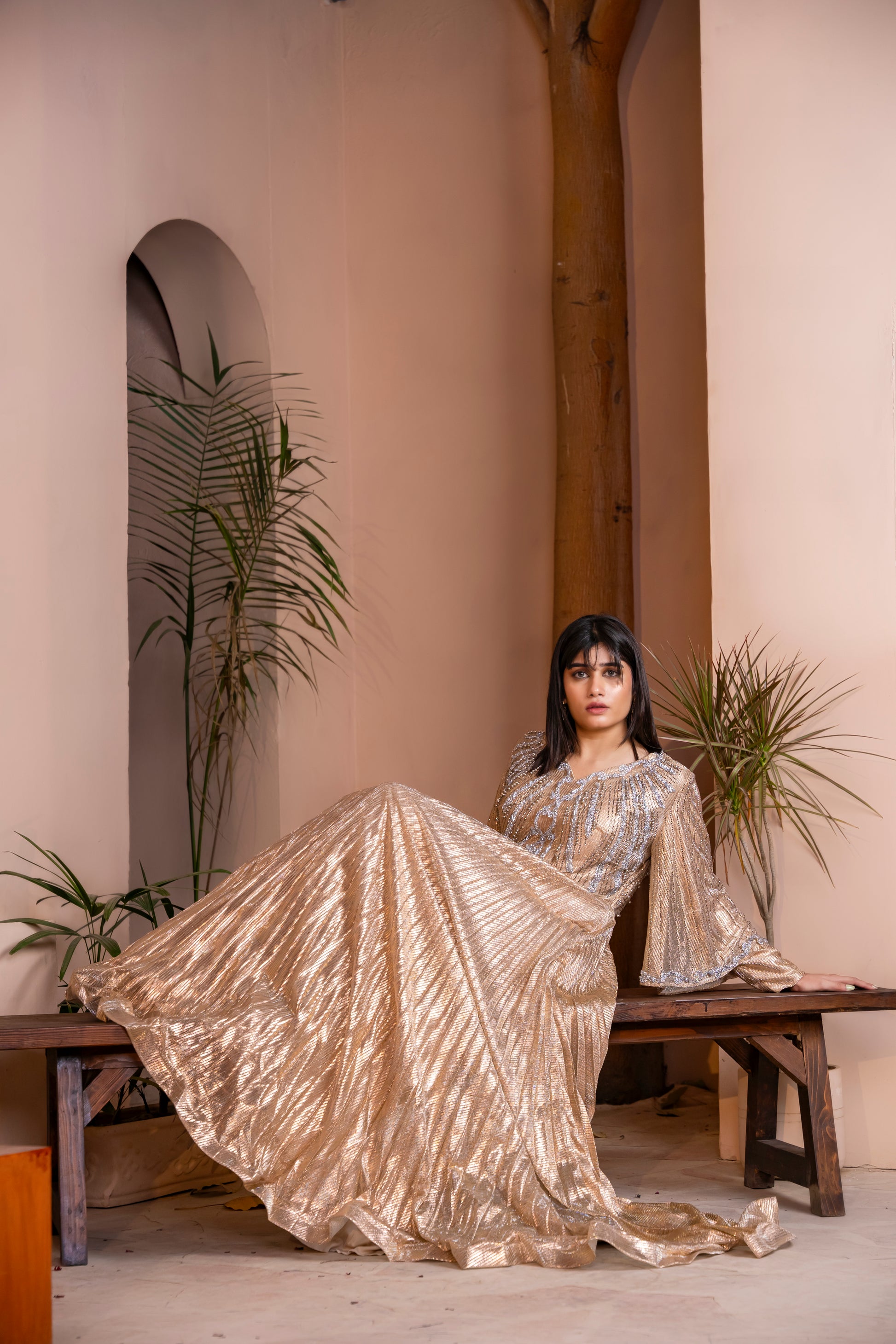 A radiant statement piece crafted to embody elegance and quiet luxury. The flowing silhouette drapes beautifully, creating a soft, regal presence with every step. Intricate hand-embellished detailing on the bodice adds a touch of sparkle, while the pleated fall enhances movement and grace. Designed for women who love timeless glamour, Empress Glow is perfect for soirΓ©es, celebrations, and every moment you wish to feel effortlessly imperial.
