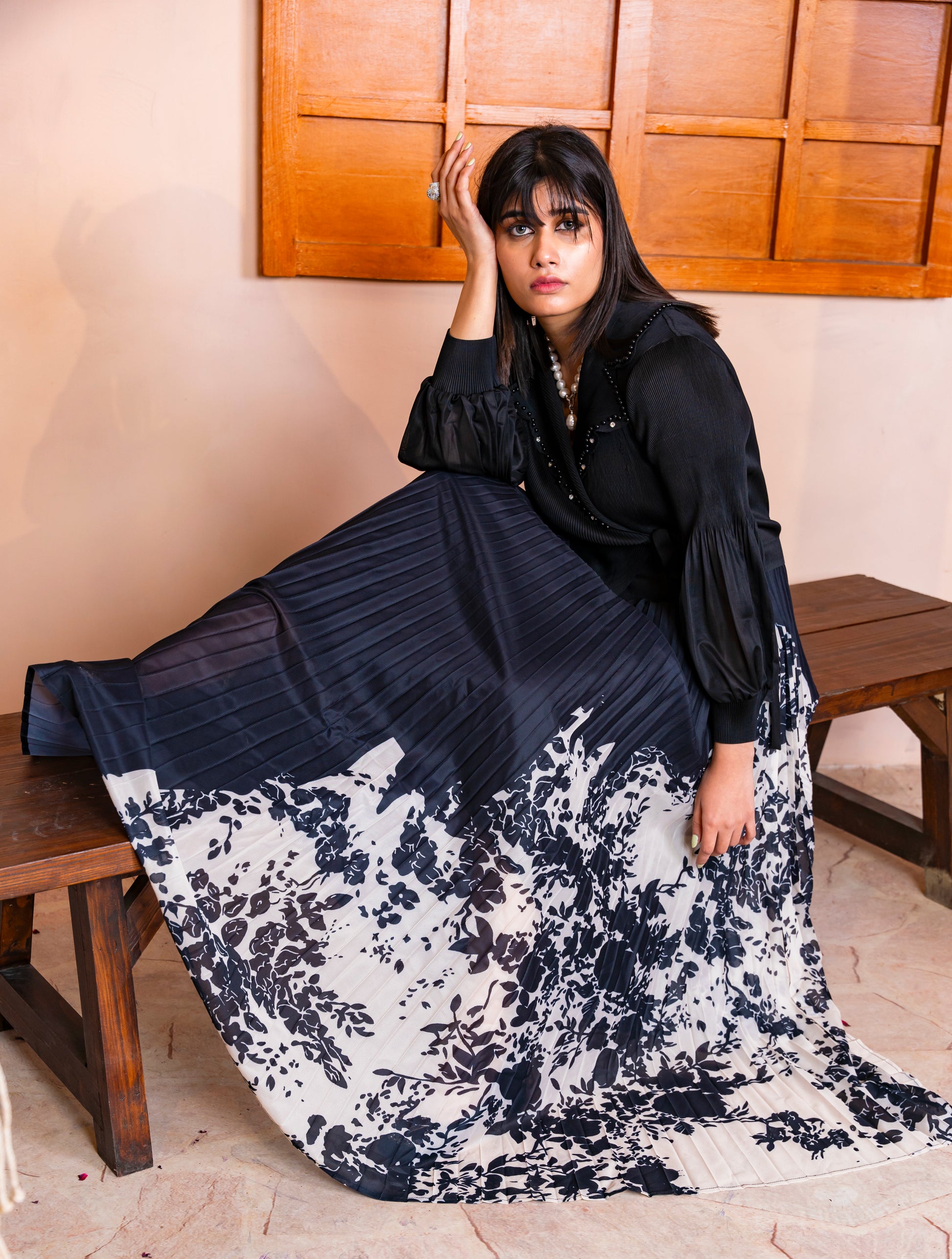 A formal western skirt outfit that exudes elegance and modern artistry. Moonlit Canvas features a striking white splash design on a dual-tone base, creating a graceful balance between sophistication and contemporary flair. Perfect for formal occasions, it’s a statement piece that captures attention effortlessly.